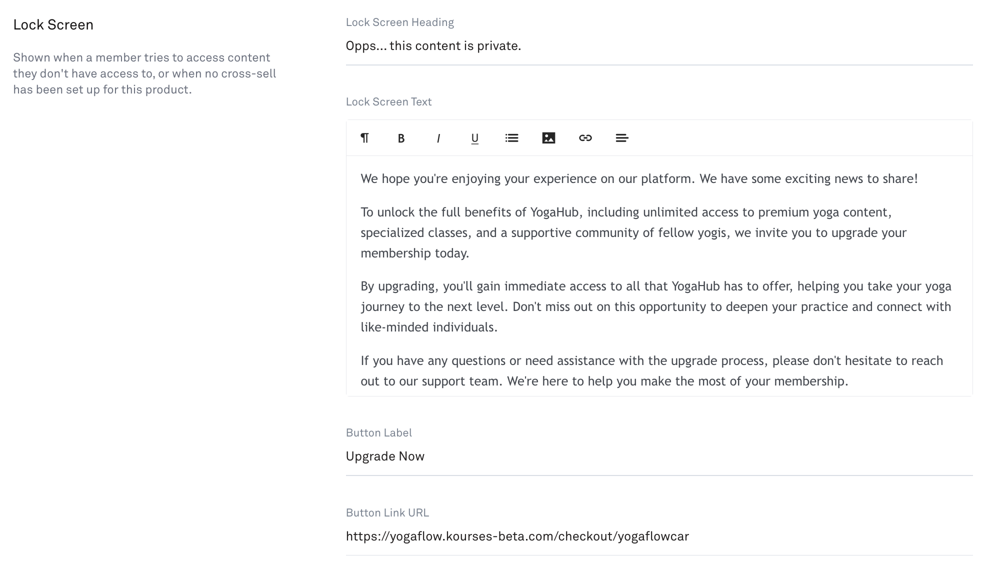Any content in your current Lock Screen settings will be removed, and the Lock Screen option will no longer be accessible in Kourses.